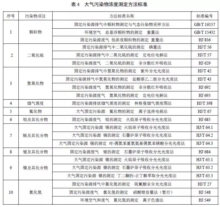 5.1.7 對(duì)大氣污染物排放濃度的測(cè)定采用表4所列的方法標(biāo)準(zhǔn)。