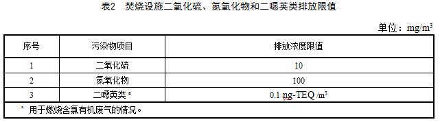 4.2.2廢氣焚燒設(shè)施應(yīng)對排放煙氣中的二氧化硫、氮氧化物和二噁英類進行監(jiān)測,并達到表2規(guī)定的要求。其他大氣污染物排放還應(yīng)滿足表1的控制要求。