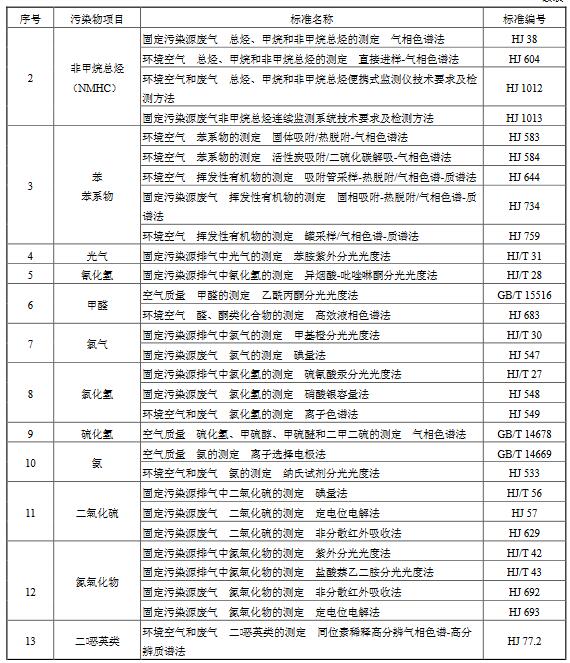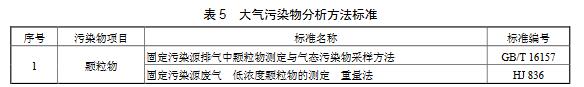 7.2.3 大氣污染物的分析測定采用表5中所列的方法標準。