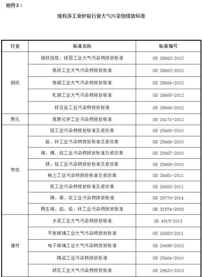 3.現(xiàn)有涉工業(yè)爐窯行業(yè)大氣污染物排放標準
