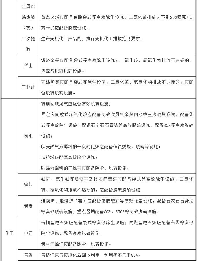 暫未制訂行業(yè)排放標準的工業(yè)爐窯,包括鑄造,日用玻璃,玻璃纖維、耐火材料、石灰、礦物棉等建材行業(yè),鎢、工業(yè)硅、金屬冶煉廢渣(灰)二次提取等有色金屬行業(yè),氮肥、電石、無機磷、活性炭等化工行業(yè),應參照相關行業(yè)已出臺的標準,全面加大污染治理力度(見附件4),鑄造行業(yè)燒結、高爐工序污染排放控制按照鋼鐵行業(yè)相關標準要求執(zhí)行;重點區(qū)域原則上按照顆粒物、二氧化硫、氮氧化物排放限值分別不高于30、200、300毫克/立方米實施改造,其中,日用玻璃、玻璃棉氮氧化物排放限值不高于400毫克/立方米;已制定更嚴格地方排放標準的地區(qū),執(zhí)行地方排放標準。
